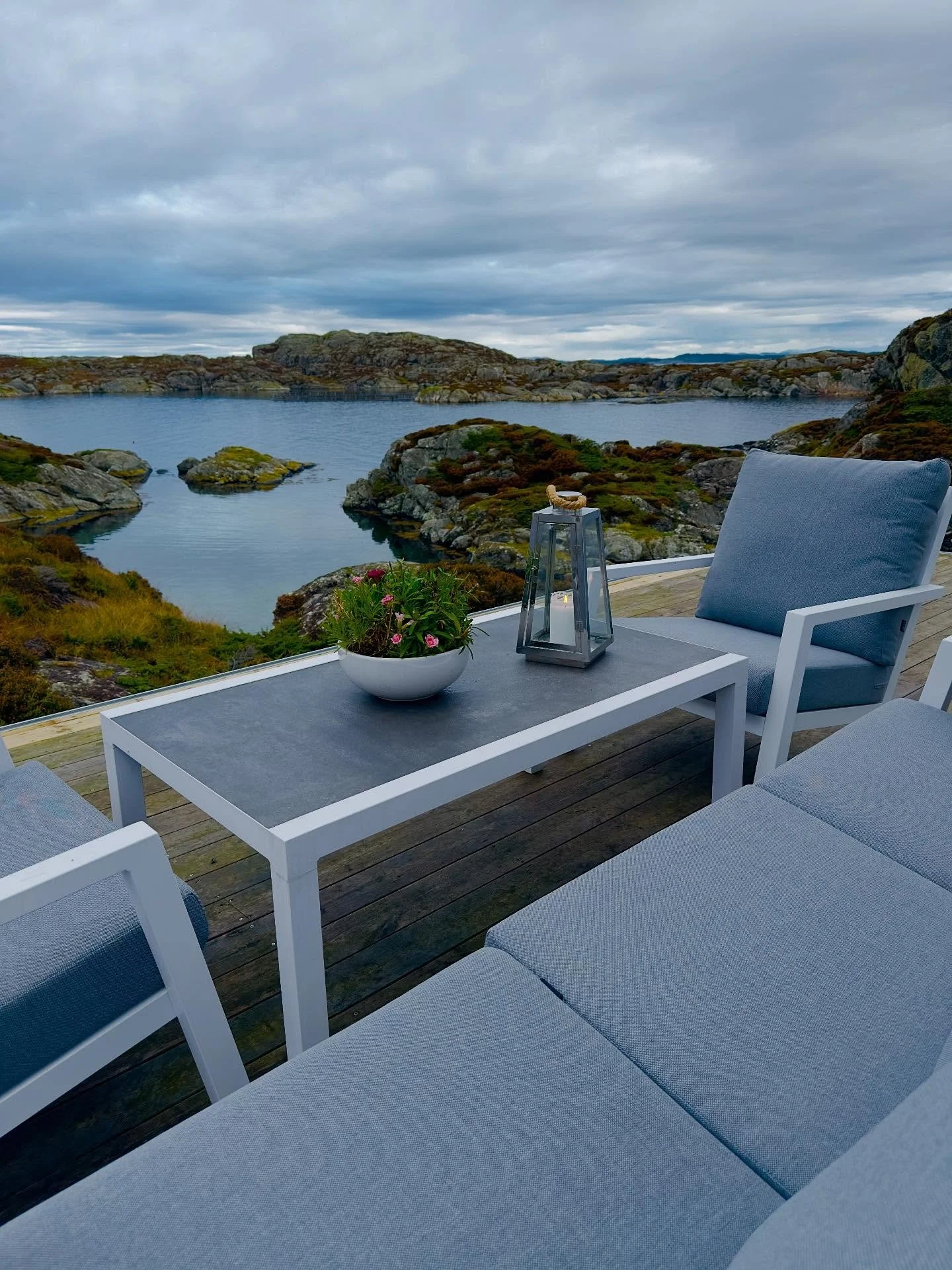 På Havslottet våkner du til lyden av bølger og utsikt mot åpent hav. Dagen starter med kaffe på terrassen, mens du ser solen glitre i havoverflaten.