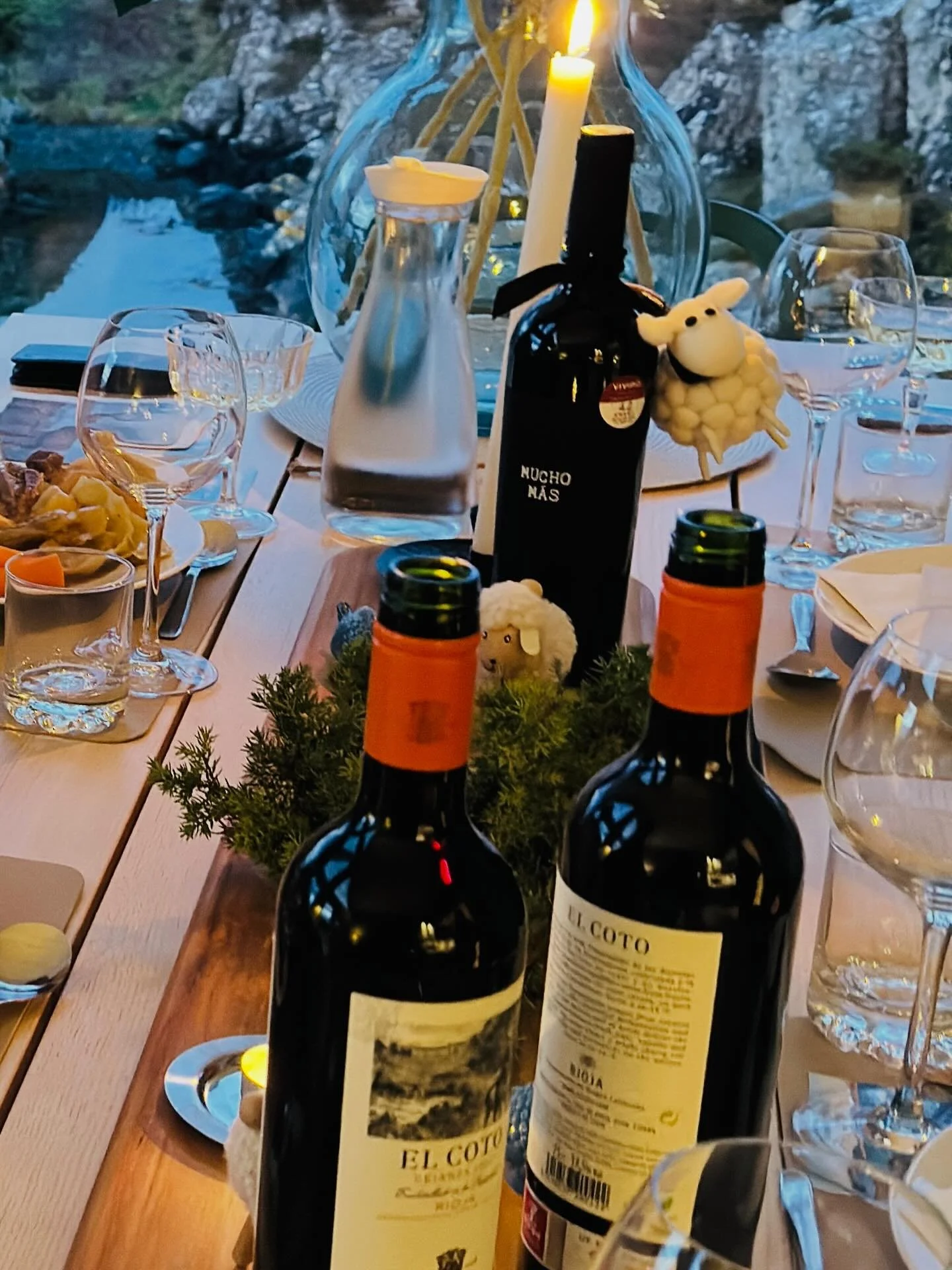 Bilde av hytte kos med pent dekket bord inne på hytten