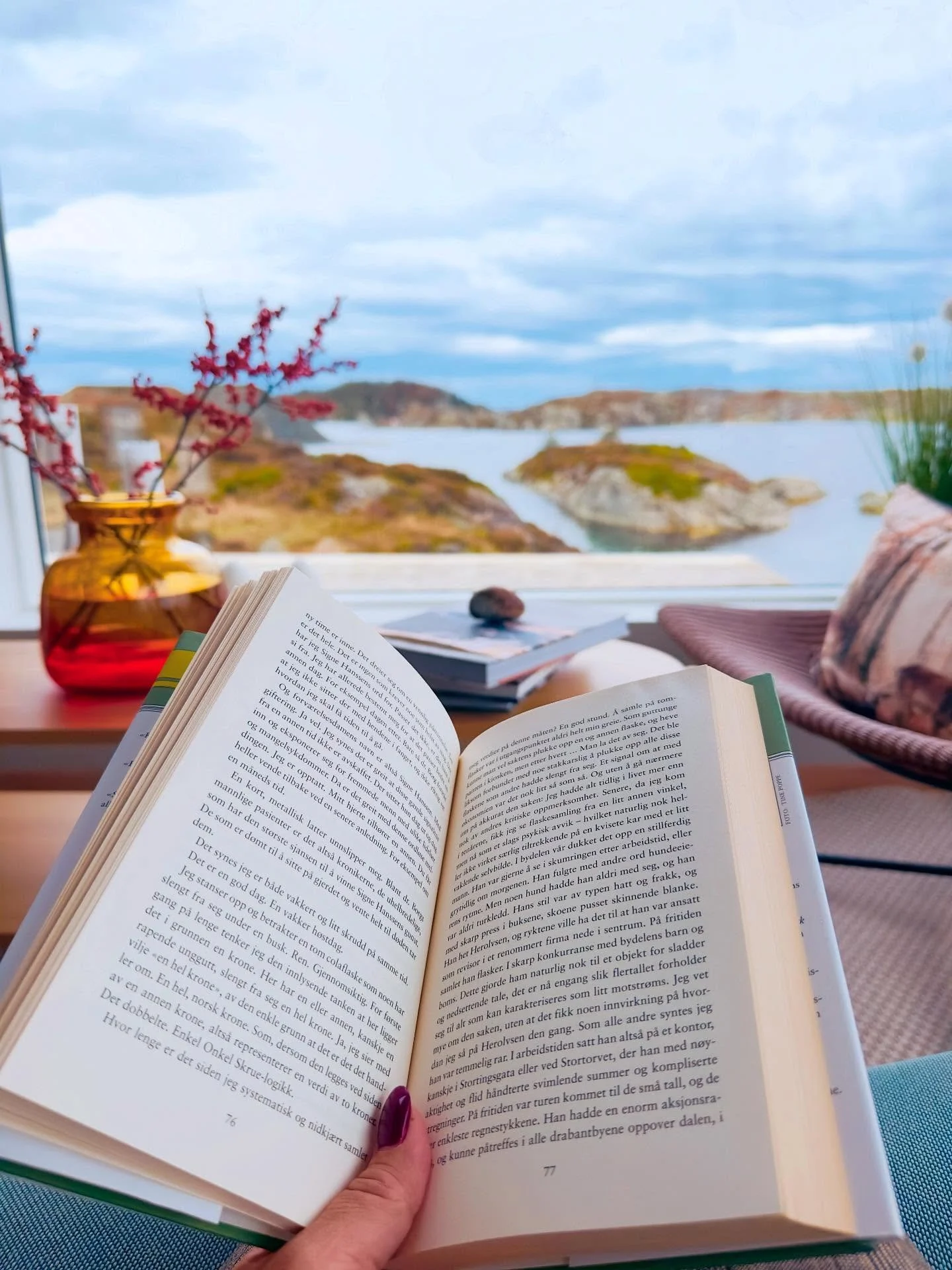 Tenn peisen, finn frem et brettspill, les en bok eller lag en god middag sammen. De store vinduene gjør at du alltid har havet med deg, selv når været står på.